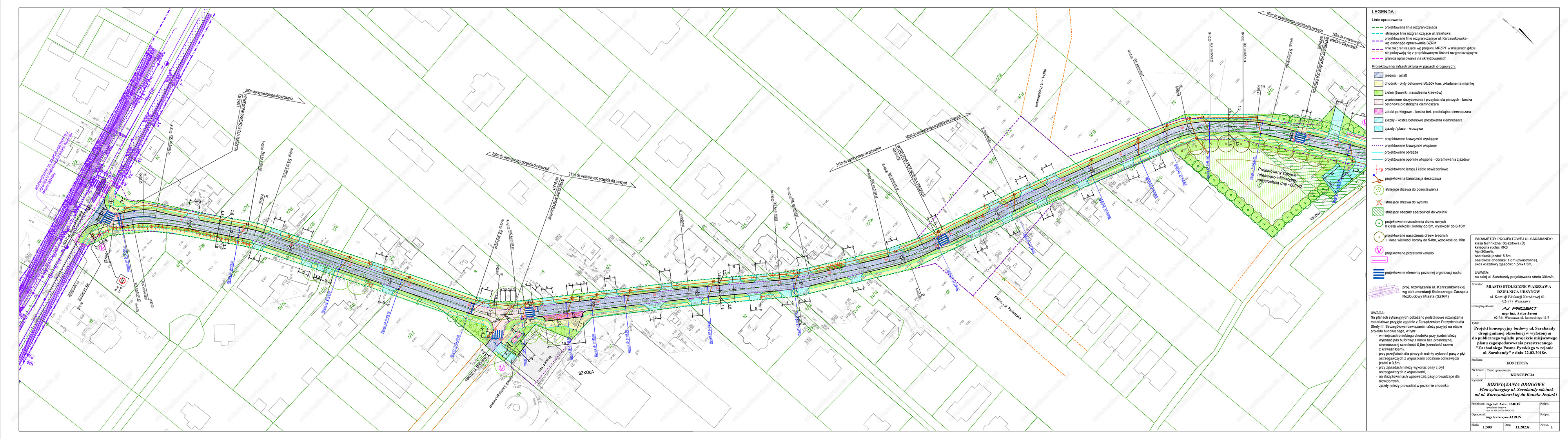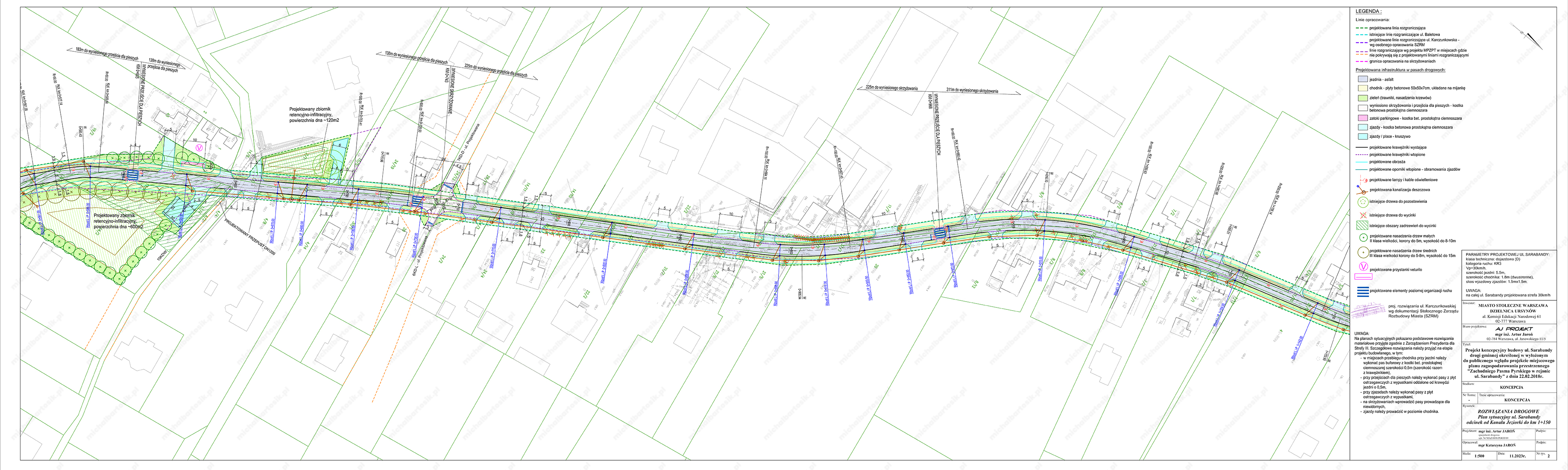 Przebudowa ul. Sarabandy na całym odcinku – od ul. Karczunkowskiej do ul. Baletowej – obejmuje budowę nowej jezdni w standardzie miejskim, chodników (częściowo oddzielonych pasami zieleni), zjazdów do posesji oraz pełnej infrastruktury towarzyszącej, w tym oświetlenia i odwodnienia. Projekt przewiduje również wyniesione przejścia i skrzyżowania, elementy poprawiające bezpieczeństwo ruchu oraz rozwiązania retencyjne dla wód opadowych, szczególnie w rejonie Kanału Jeziorki. Inwestycja zakłada także uporządkowanie zieleni przyulicznej oraz spójne powiązanie z istniejącym układem drogowym, co ma usprawnić komunikację i zwiększyć bezpieczeństwo mieszkańców.